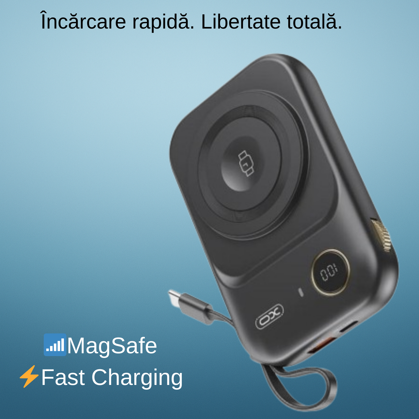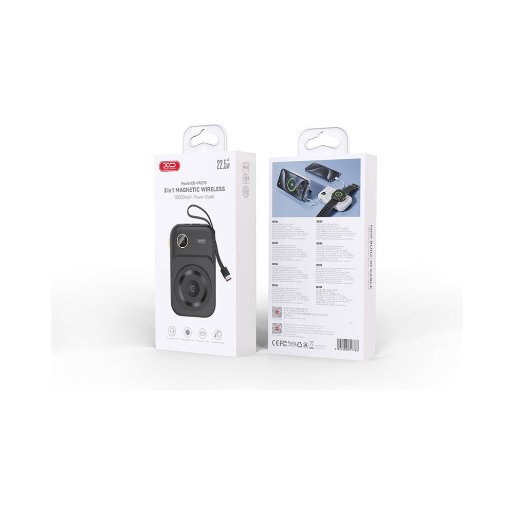 XO PR270 este powerbank-ul 3–în–1 cu 10.000 mAh: încărcare wireless MagSafe, suport telefon integrat și cablu USB-C incorporat. Fast Charging pentru viteză maximă.
