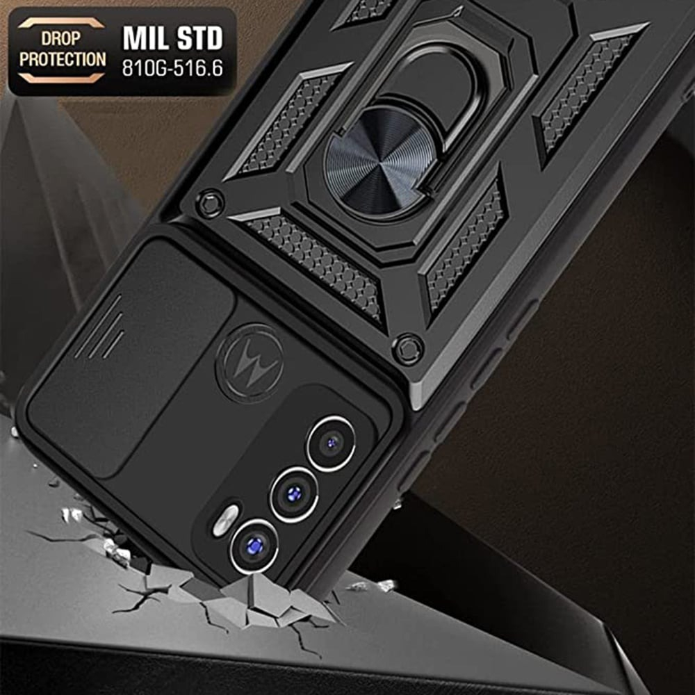 Husa Antisoc Motorola Moto E20 / E30 / E40 Protectie Camera, Inel Stand, Negru – Techsuit TCSS